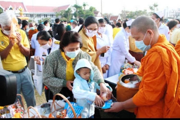 ผู้ว่าฯสุรินทร์ ฯนำพสกนิกรทุกเหล่า ประกอบพิธีทางศาสนา ทำบุญตักบาตร ข้าวสาร อาหารแห้ง แด่พระสงฆ์ 90 รูป เนื่องในวันพ่อแห่งชาติ 5 ธันวาคม 2563