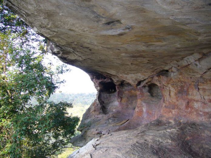 Tham Palm Palm is a prehistoric archaeological site. Found a picture of a red palm in a sandstone niche, about 7 meters deep, 3 meters high, 50 meters long, the size of an adult’s hand, 4 pictures, 2 small images, by placing their hands against the stone wall and spraying bright red. Fine Arts Unit 7 Discovered in 1964
