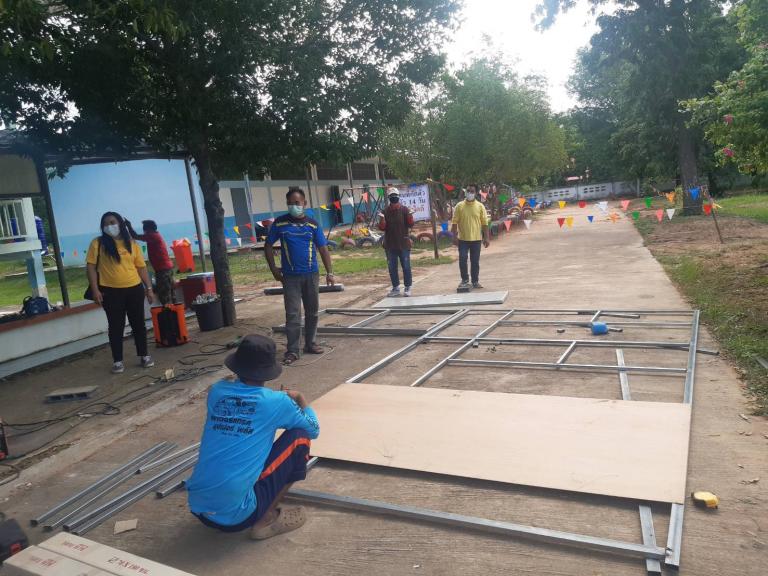ผู้นำตำบลท่านางแมว แวงน้อย ร่วมใจสร้างสถานที่กักตัวโควิด 19