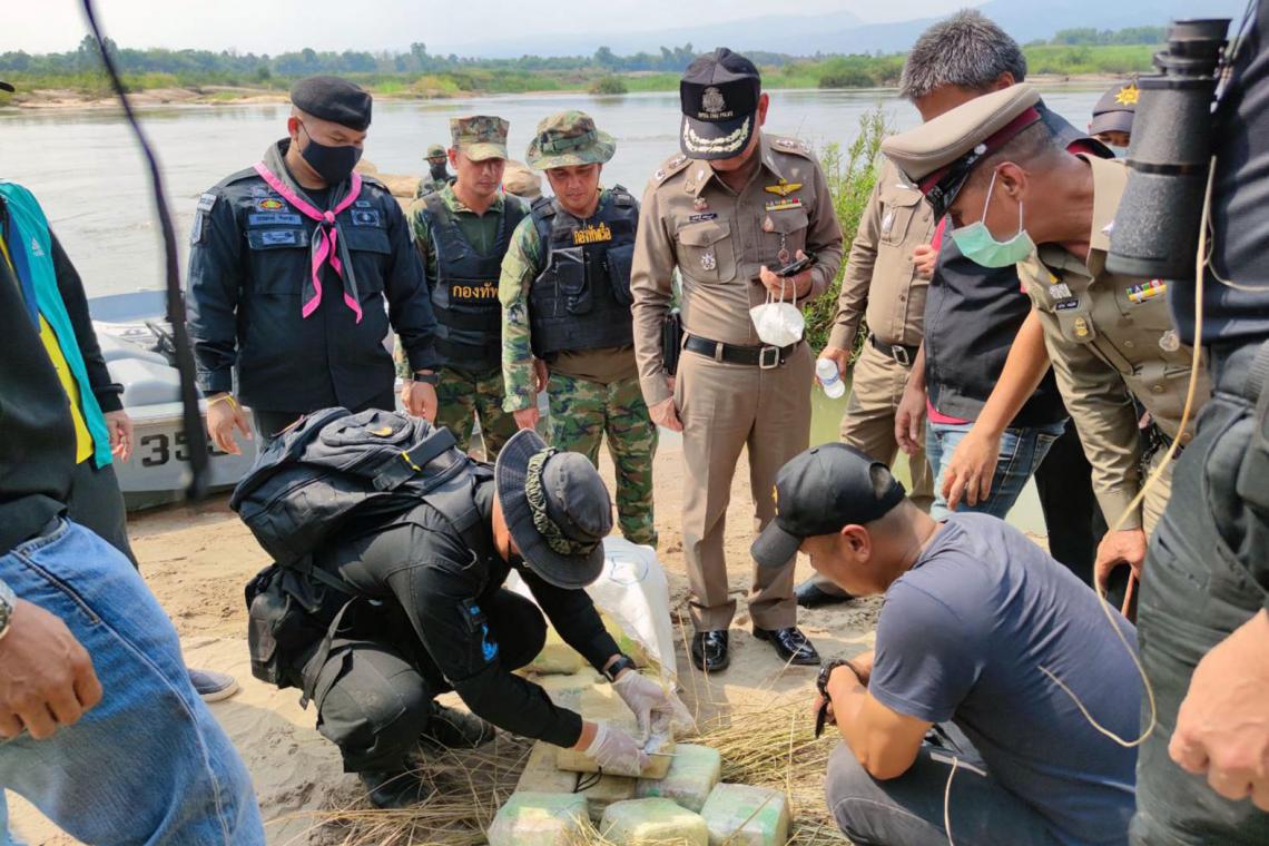 และเช้าวันนี้ได้ร่วมกันออกลาดตะเวนตามลำแม่น้ำโขง พบกระสอบปุ๋ยสีขาวขนาดใหญ่จำนวน 2 กระสอบ ลอยเข้ามาติดริมฝั่งโขง ในพื้นที่บ้านเวินโดน ต.ปากคาด อ.ปากคาด เป็นยาบ้า 570,000 เม็ดและไอซ์ 62 กิโลกรัม ที่บ้านต้าย ต.นากั้ง อ.ปากคาด 1 กระสอบและกำนัน ผู้ใหญ่บ้าน พบอีก 1 กระสอบที่บริเวณลำน้ำโขง ปากห้วยหนองมุม บ้านท่าสุขสันต์ ต.ปากคาด นับยาบ้าได้ 380,000 เม็ด ค่าสุดตำรวจชุดสืบสวนภูธรจังหวัด สภ.เมืองบึงกาฬ ฝ่ายปกครองมีกำนันตำบลไคสี หมู่ที่ 2 ต.ไคสี อ.เมืองบึงกาฬ พบกระสอบปุ๋ยลอยมาติดอยู่บริเวณริมน้ำโขง ปากห้วยผาคาง อีก 1 กระสอบยาบ้า 391,540 เม็ด