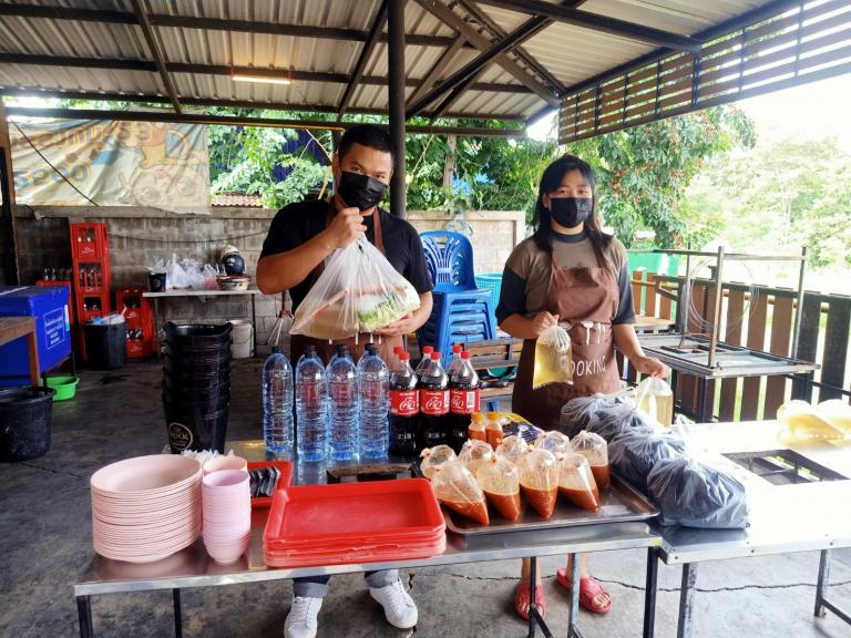 ร้านหอมหวลหมูกระทะ เลขที่ 49 ละแวกใกล้ตลาด ทางเข้าประตู 1 มหาวิทยาลัยเทคโนโลยีสุรนารี (มทส.) นครราชสีมา จัดโปรโมชั่นสู้โควิด ดึงดูดลึกค้าโดยขายหมูกระทะแบบเดลิเวอรี่ ส่งถึงบ้าน 2 ชุด แถมฟรี 1 ชุด รวมทั้งเครื่องดื่ม ให้ยืมเตาพร้อมอุปกรณ์ในการรับประทานครบครัน จุดขายอยู่ที่เจ้าของร้านใจดีให้ยืมทั้งโต๊ะและเก้าอี้ยกขึ้นรถกระบะส่งให้ลูกค้าถึงบ้าน นายจักรกฤษณ์ พุ่มดอกไม้ อายุ 28 ปี เจ้าของร้านหอมหวลหมูกระทะ เปิดเผยว่า หลังเรียนจบปริญญาตรี หลักสูตรวิศวกรรมยานยนต์ สาขาวิศวกรรมเครื่องกล มทส. ได้นำเงินเก็บ 4 แสนบาท มาลงทุนประกอบธุรกิจร้านหมูกระทะ ที่บริเวณด้านหน้าประตู 1มทส. เมื่อ 5 ปีก่อน ใช้ชื่อ ร้านหมูกระทะหอมหวล ปรากฏประสบผลสำเร็จมีลูกค้าติดใจรสชาติมาอุดหนุนใช้บริการกันอย่างต่อเนื่อง ต่อมาเกิดสถานการณ์วิกฤตโควิด ทำให้ยอดขายลดลงอย่างมาก เดิมวันละ 1 หมื่นบาท ลดลงมาเหลือวันละ 2,000 บาท จึงคิดหาวิธีประคับประคองธุรกิจให้อยู่รอด โดยมีโปรโมชั่นซื้อหมูกระทะ 2 ชุดแถม 1 ชุด แต่ไม่สามารถกระตุ้นยอดขายขึ้นมาได้และเข้าใจดีทุกร้านค้าได้รับผลกระทบเช่นกัน ต่อมาจังหวัดนครราชสีมา เป็นพื้นที่สีแดงเข้ม ต้องปฏิบัติตามคำสั่ง ศบค. จึงต้องปรับกลยุทธ์การขายเพื่อความอยู่รอดและดึงดูดความสนใจจากลูกค้า หมูกระทะแบบ 2 ชุด แถม 1 ชุด ส่งฟรีถึงบ้าน พร้อมเพิ่มชุดโต๊ะเก้าอี้ ชุดจานชาม แก้วน้ำ เครื่องดื่ม น้ำแข็ง น้ำเปล่า น้ำอัดลมชุดเตากระทะ กาน้ำซุปและจุดเตาให้ถึงที่ เริ่มต้นราคา 499 บาท เมื่อลูกค้ารับประทานเสร็จไม่ต้องล้าง ร้านรับผิดชอบเก็บอุปกรณ์ทั้งหมดกลับเอง บริการส่งในรัศมีไม่เกิน 5 กิโลเมตร กรณีนอกเขตมีค่าส่งตามระยะทางซึ่งได้รับผลตอบรับเป็นที่น่าพอใจ ยอดขายพุ่งขึ้นถึงวันละ10,000 บาท เกือบเท่ายอดขายเดิมก่อนเกิดสถานการณ์โรคระบาด สำหรับราคาจำหน่ายหมูกระทะชุดใหญ่ ชุดละ 200 บาท ชุดเล็กจำหน่ายชุดละ150 บาท โดยทั้ง 2 ชุด มีโปรโมชั่น คือ ซื้อ 2 ชุดแถม 1 ชุด ร้านเปิดตั้งแต่เวลา 15.00 น.เป็นต้นไป และจะพยายามเก็บร้านก่อนเวลา 20:00 น ตามมาตรการที่กำหนด สนใจติดต่อสอบถามได้ที่เบอร์โทรศัพท์ 093-1324153