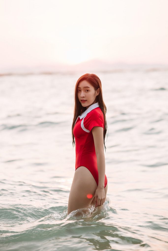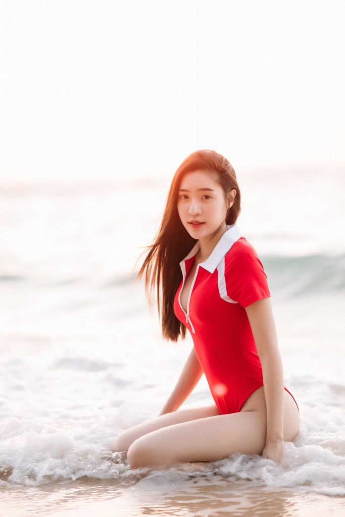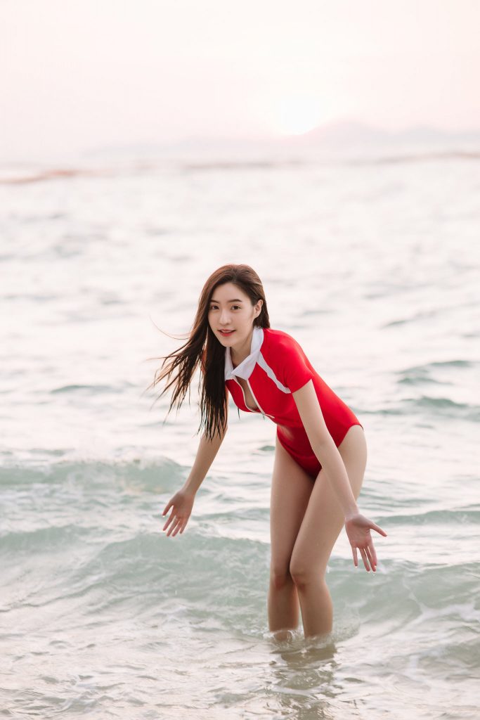 สาวชุดแดง ลงเล่นน้ำทะเล – สาวสวย เซ็กซี่ น่ารักใสๆ