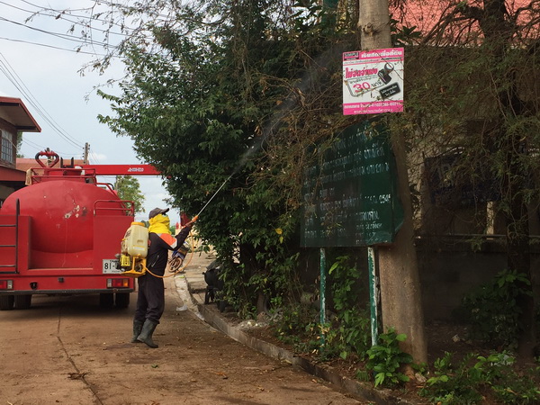 หนองคายพ่นยาฆ่าหนอนบุ้งเหลืองช่วยชาวบ้าน