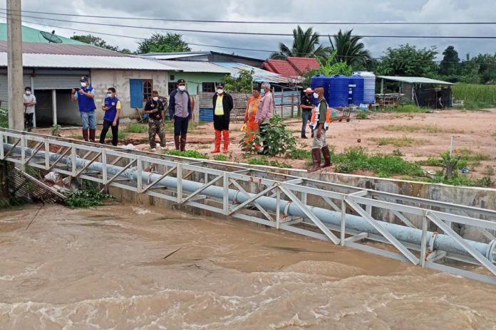 ที่บ้านใหม่ หมู่ที่ 5 ต.ด่านขุนทด อ.ด่านขุนทด จ.นครราชสีมา นายกฤษฏิ์ พูนเกษม ป้องกันและบรรเทาสาธารณภัยจังหวัด (ปภ.จ.) นครราชสีมา พร้อมเจ้าหน้าที่และอาสาสมัครหน่วยกู้ภัยฮุก.31 โคราช ช่วยกันติดตั้งสะพานเบลีย์ (Bailey Bridge) เพื่อเชื่อมต่อเส้นทางถนนสายด่านขุนทด-บ้านเก่า ซึ่งถูกกระแสน้ำกัดเซาะคอสะพานขาด ใช้เวลาดำเนินการประมาณ 2 ชั่วโมง จึงสามารถเดินทางสัญจรได้ นายกฤษฏิ์ ปภ.จ.นครราชสีมา เปิดเผยว่า ได้รับการสนับสนุนกำลังพลและอุปกรณ์กู้ภัยรวมทั้งเครื่องจักรกลสาธารณภัยจากศูนย์ป้องกันและบรรเทาสาธารณภัยเขต 5 (ศูนย์ ปภ. เขต 5 นครราชสีมา) ประกอบด้วยเจ้าหน้าที่ 8 คน รถประกอบอาหารพร้อมอุปกรณ์ 1 คัน รถผลิตน้ำดื่ม 1 คัน รถปฏิบัติการเคลื่อนย้ายผู้ประสบภัย 2 คัน สนับสนุนการปฏิบัติงานจัดตั้งโรงครัวพระราชทานที่สำนักงานเทศบาลตำบล (ทต.) ด่านขุนทด อ.ด่านขุนทด และให้ความช่วยเหลือผู้ประสบอุทกภัยจากอิทธิพลของพายุโซนร้อน “เตี้ยนหมู่” ในพื้นที่ 5 ตำบล ชาวบ้านกว่า 500 คน