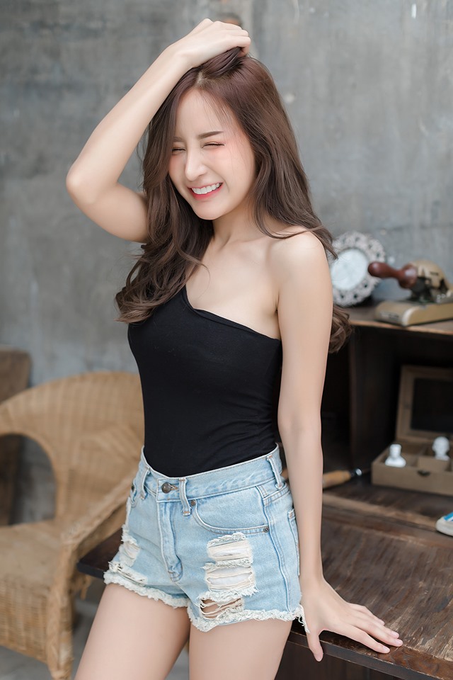 หน้าใส สายเดี่ยว ขาสั้น กับท่าโพสน่ารักๆ